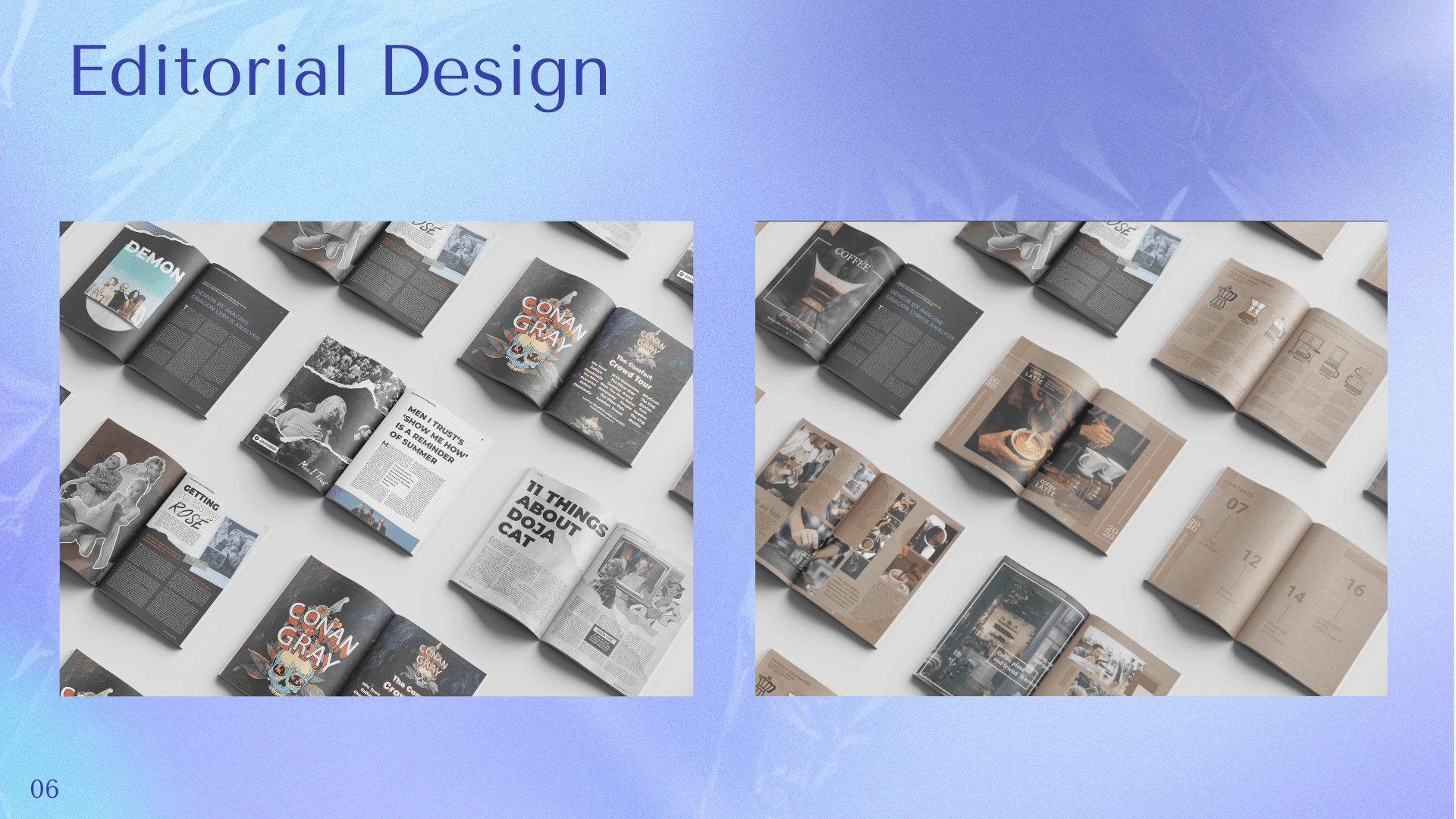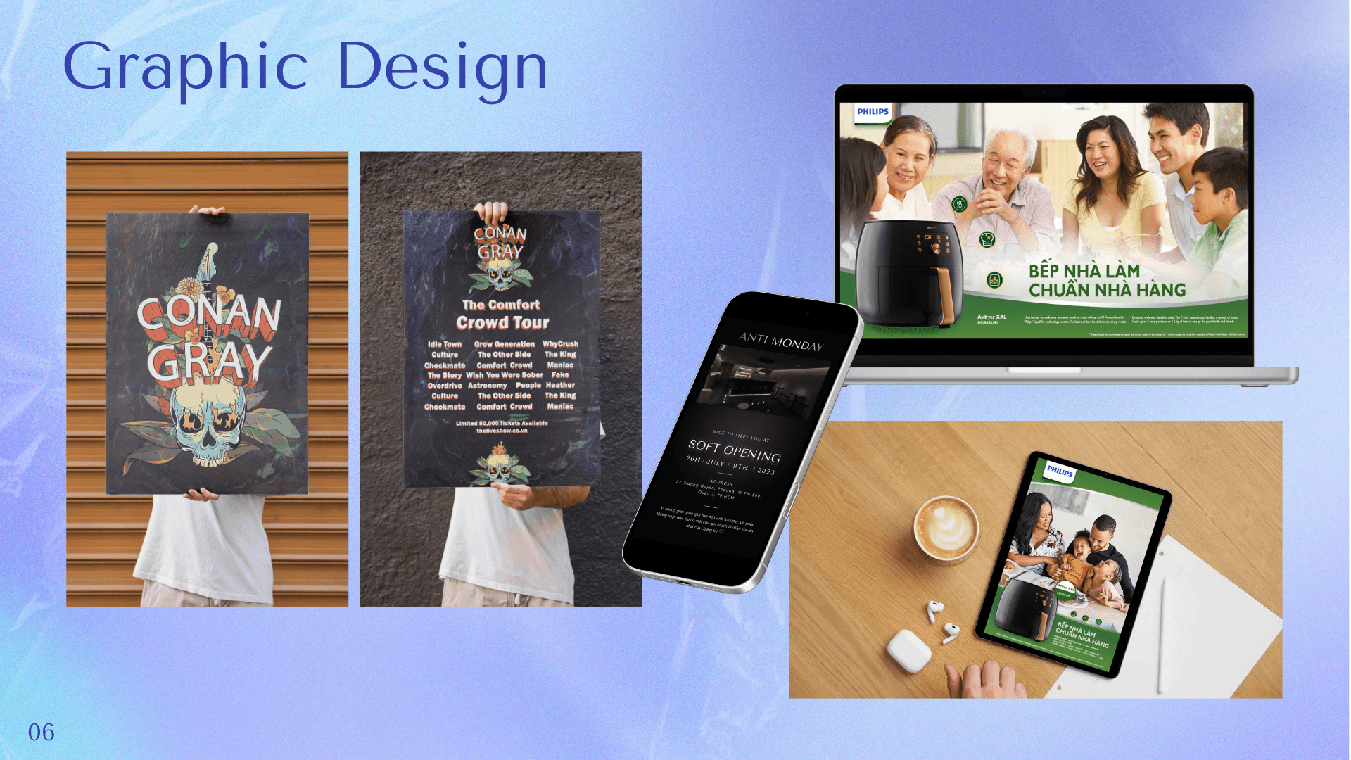 Selected graphic design projects focused on visual identity, event branding, and editorial layouts, created to meet both conceptual and practical needs.