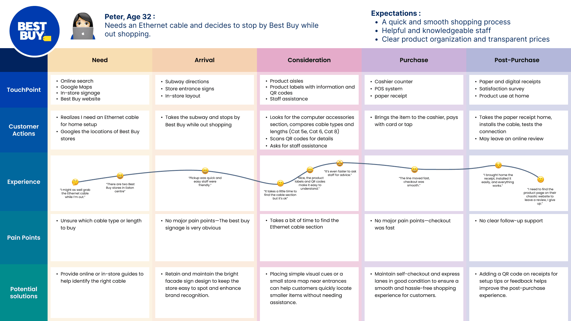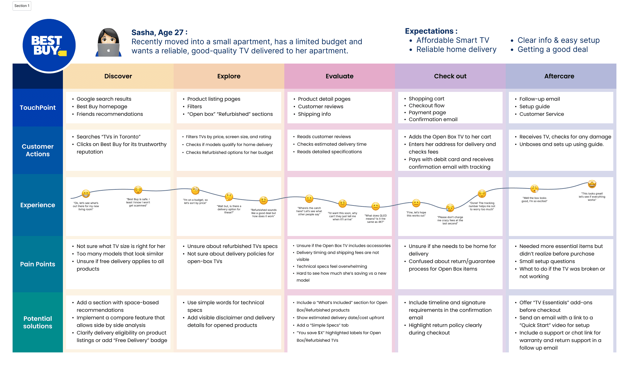 Identify usability gaps in the online electronics purchasing experience and improve how users find key information about product reliability, delivery, and return policies.