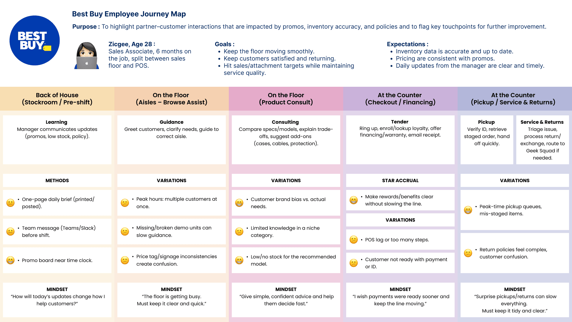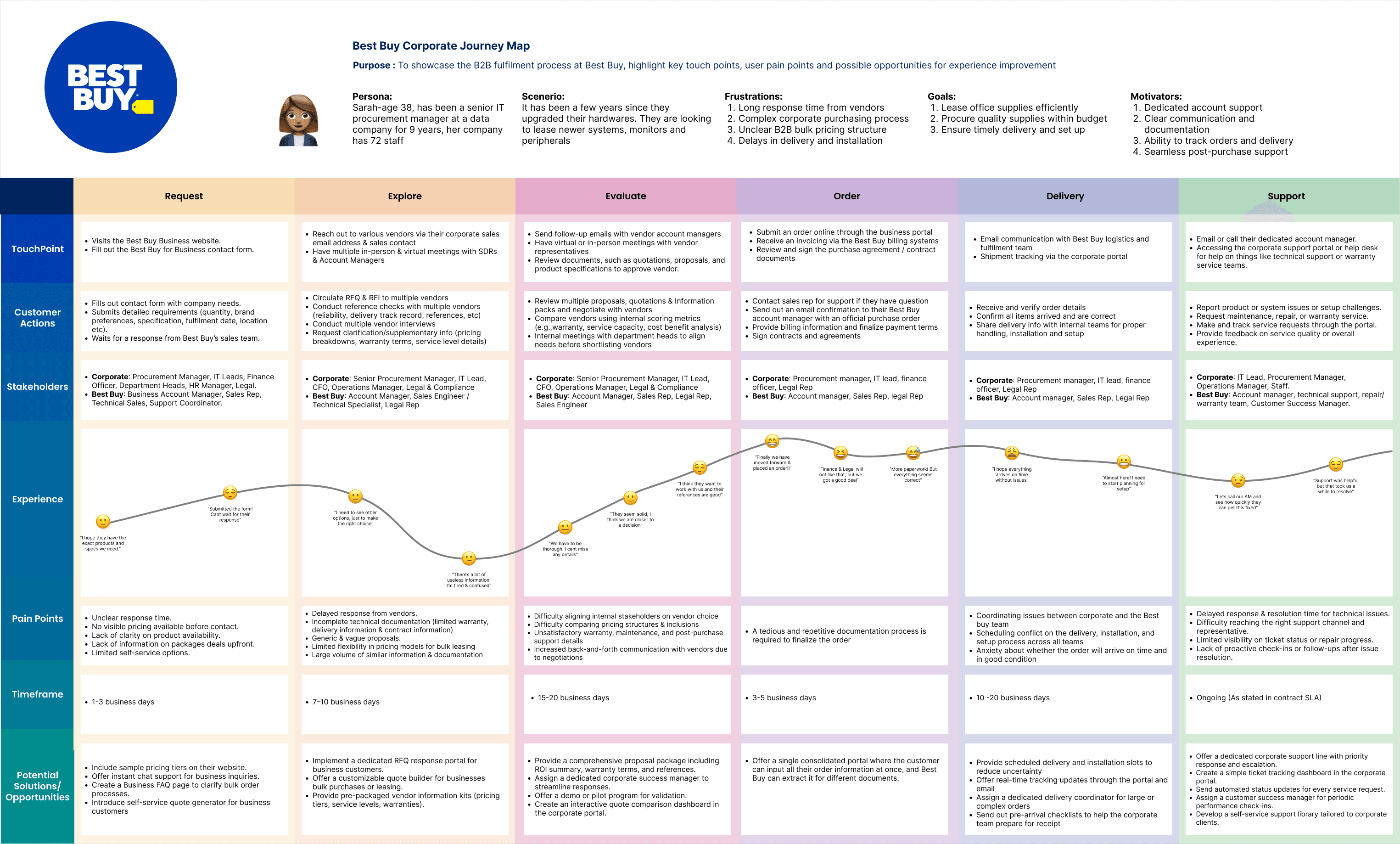 This service blueprint maps how the user experience is supported across different touchpoints, including digital platforms, physical interactions, and internal operational processes.