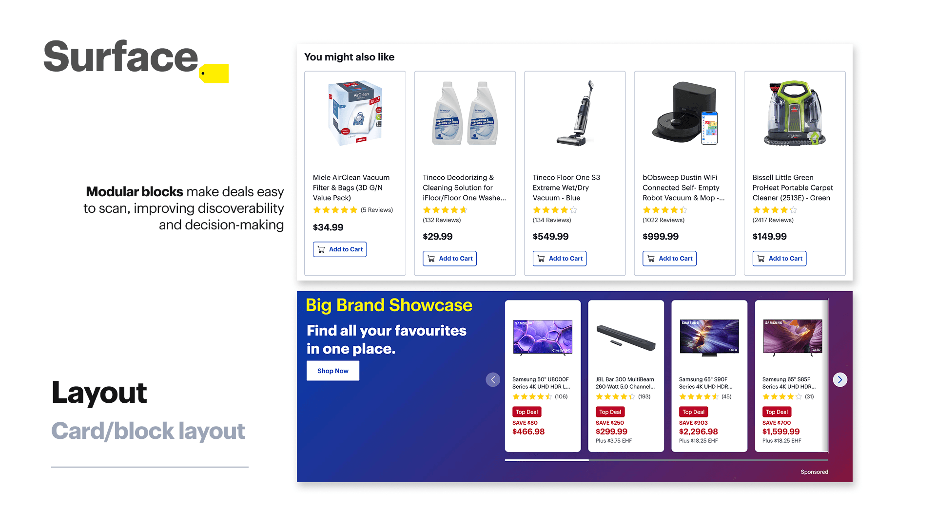 • Homepage and product discovery