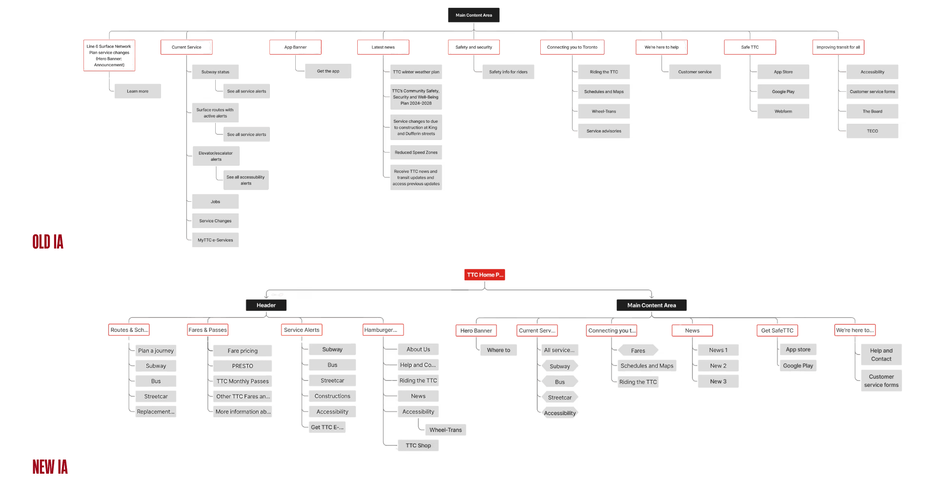 A full-cycle UX redesign improving TTC website navigation through IA auditing, usability testing, and iterative validation.